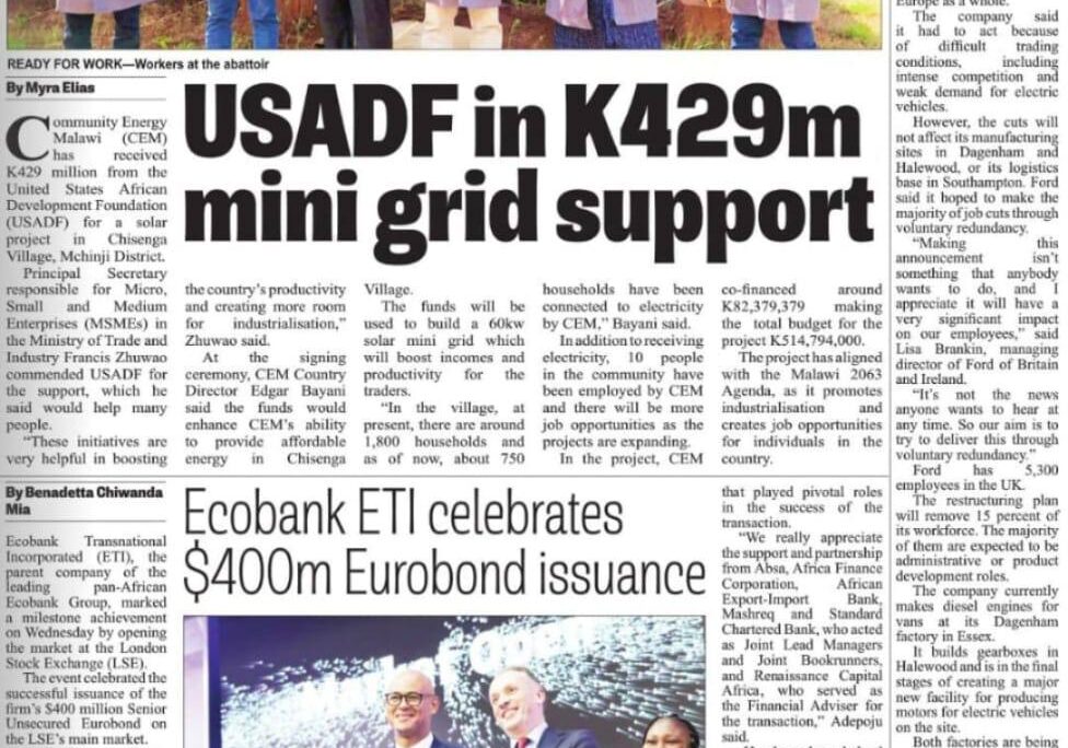 Community Energy Malawi (CEM) Trading Ltd is a pioneering mini-grid developer and renewable energy solutions provider in Malawi, committed to delivering clean, reliable, and affordable electricity to underserved rural communities.